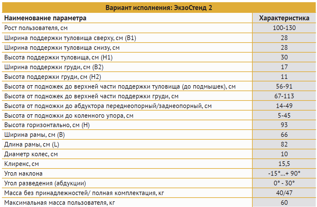 ЭКЗОСТЕНД. Размер 2: рост пользователя от 100 до 130 см, вес до 60 кг.